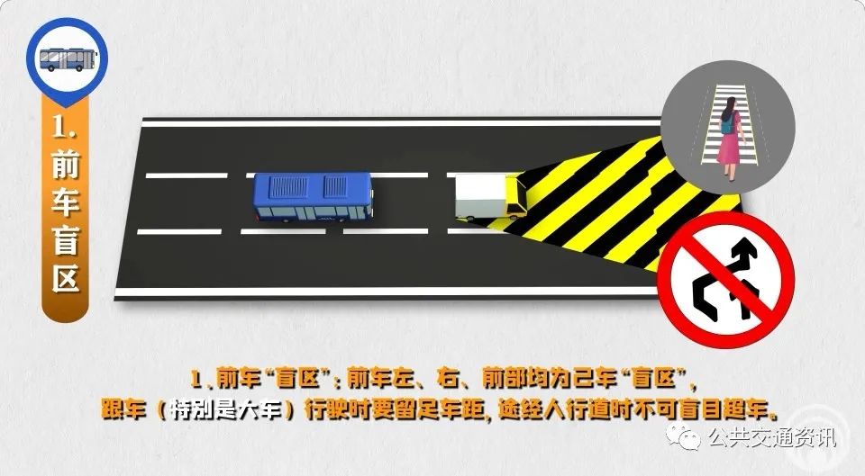 “盲區(qū)”是由于視線受到遮擋,駕駛員無(wú)法直接看到的車輛外部的區(qū)域。公交駕駛員運(yùn)營(yíng)時(shí)要防范各類“盲區(qū)”風(fēng)險(xiǎn)。