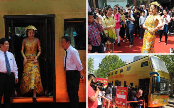 【濟(jì)南】"黃金公交車"亮相,車內(nèi)掛千件金飾