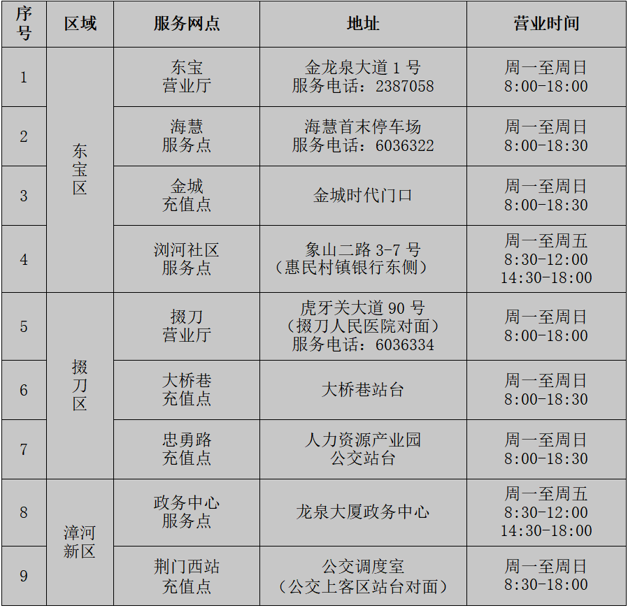 荊門城區(qū)公交IC卡充值站點