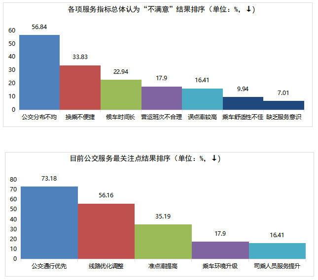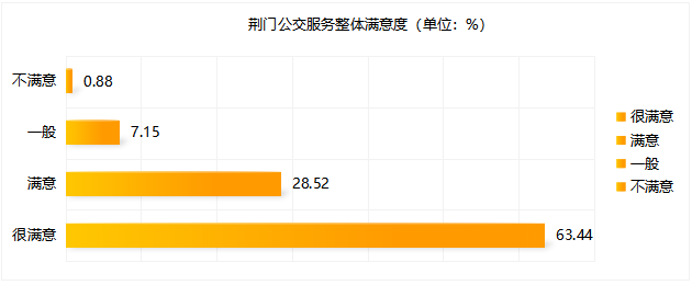 本次調(diào)查共收集有效問卷1471份,623條相關(guān)問題及建議。問卷涵蓋公交線網(wǎng)優(yōu)化、文明服務(wù)、換乘便捷度、候車時(shí)間、乘車舒適度、智能信息建設(shè)等多方面內(nèi)容。調(diào)查顯示,參與投票人群年齡結(jié)構(gòu)主要集中在18~59歲,其中以40~59歲為主體。(一)公交服務(wù)滿意度指標(biāo)及數(shù)值根據(jù)交通運(yùn)輸部GB/T 36953.2-2018城市公共交通乘客滿意度評價(jià)方法,公共交通乘客滿意度指乘客對公共交通服務(wù)質(zhì)量的滿意程度,評價(jià)程度設(shè)置為“很滿意”、“滿意”、“一般”與“不滿意”。問卷顯示荊門公交服務(wù)整體滿意度為91.96%。問卷顯示公交線網(wǎng)分布不均、線路不合理、換乘不便捷為主要服務(wù)訴求,公交線路分布不均為“不滿意度”投票最高問題;主干道公交優(yōu)先通行權(quán)為服務(wù)訴求投票最高關(guān)注點(diǎn)。 此次問卷調(diào)查,感謝廣大市民乘客的積極參與,市公交集團(tuán)將結(jié)合實(shí)際,認(rèn)真聽取、采納乘客提出的意見及建議,予以改進(jìn): 關(guān)于線路運(yùn)營方面,對5路線(圣境山—?;郏?、88路線(東寶碧桂園—楊家橋)、58路線(碧桂園北—漳河新區(qū)政務(wù)中心)、59路線(荊楚理工學(xué)院—掇刀區(qū)政務(wù)中心)早中晚客流高峰期加密營運(yùn)班次和增設(shè)區(qū)間班次,對33路線(楚天學(xué)?!d化三路東)、69路線(雙喜小學(xué)—園博園東門)、13路線(牌樓—園博園西門)進(jìn)行線路優(yōu)化,方便沿線居民出行需求;近期擬開通碧桂園翡翠公館至長崗萬人社區(qū)、東寶政務(wù)中心至市政務(wù)中心公交線路,具體方案正逐步規(guī)劃中。