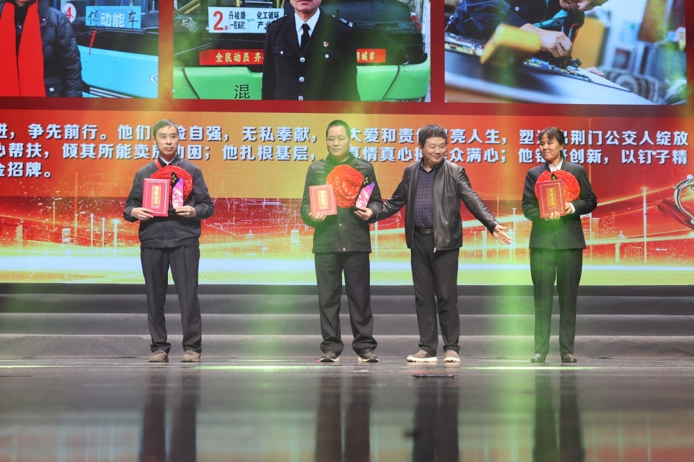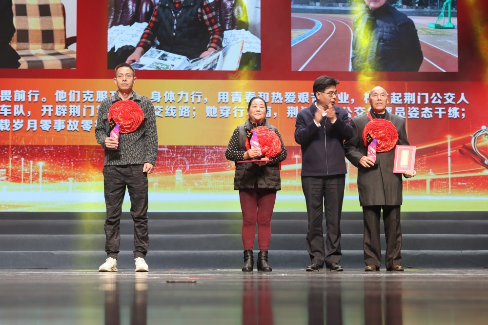 頒獎環(huán)節(jié),在荊門公交發(fā)展歷程中做出過杰出貢獻的8名“時代標(biāo)兵”人物,被授予“崢嶸歲月”“風(fēng)華正茂”“無悔青春”時代標(biāo)兵,感謝他們一路走來的無私付出和拼搏奮斗。
