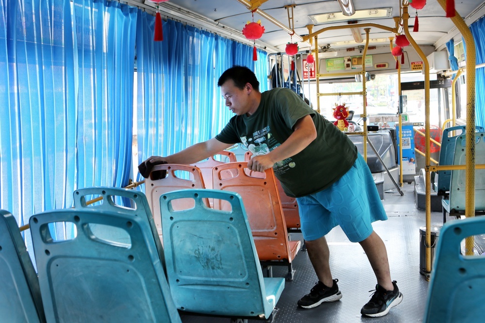 每天發(fā)車,提前1~2小時趕到停車場,檢查車輛、清潔車輛,這個習慣他保持了5年;歇班間隙只要班次不晚點,就拿起拖把、抹布打掃這車輛;愛惜車輛、享受工作、熱愛生活。