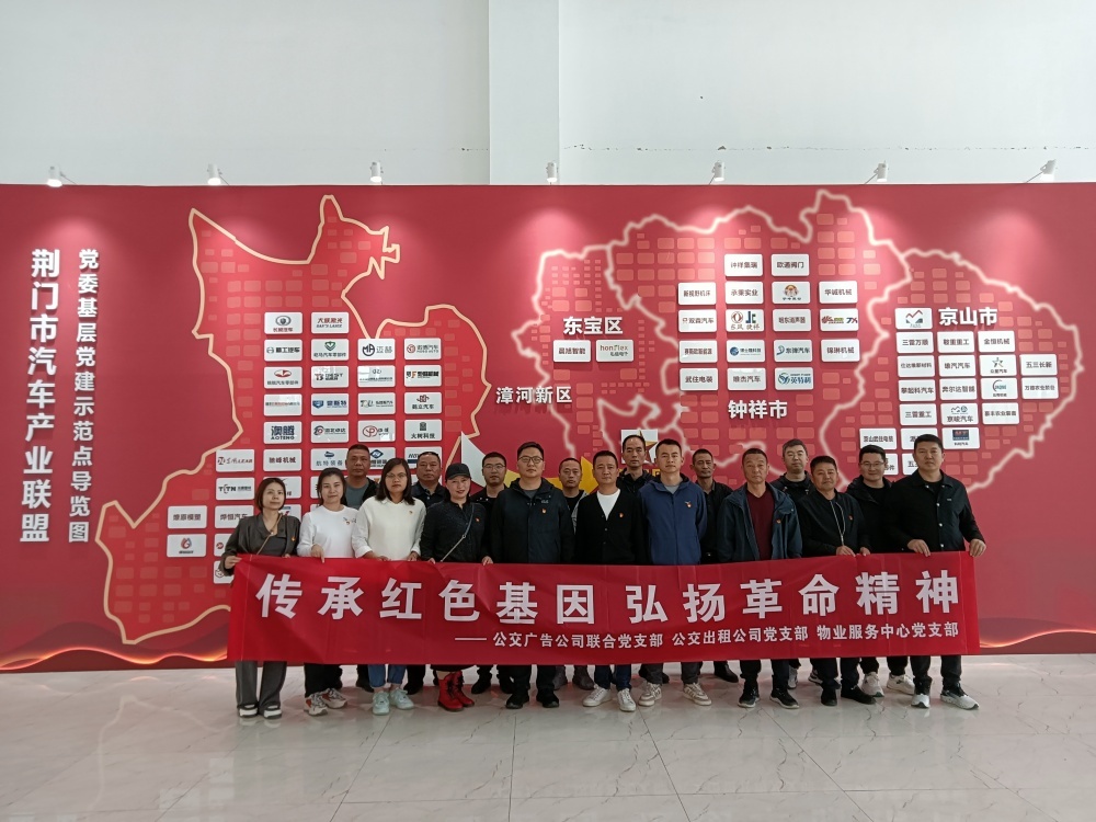 圖/公交廣告公司黨支部、公交出租公司黨支部與物業(yè)服務(wù)中心黨支部共20余名黨員及入黨積極分子在鳳凰社區(qū)、汽車產(chǎn)業(yè)園、團林鎮(zhèn)陳集村開國上將陳士榘故里聯(lián)合開展了“傳承紅色基因,弘揚革命精神”主題黨日活動。
