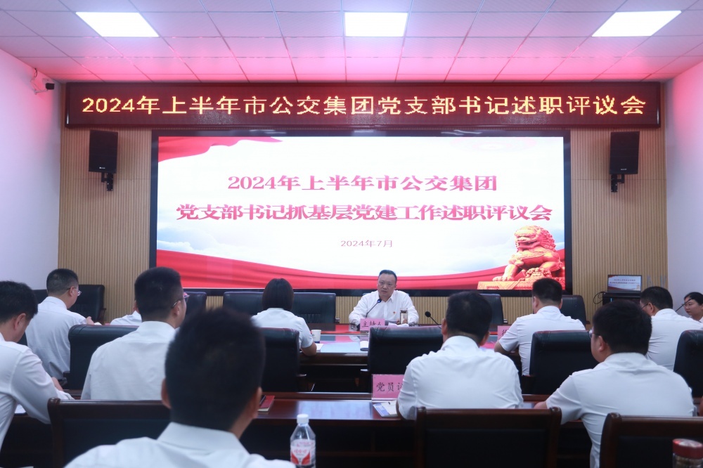 為深入學習貫徹習近平總書記關于黨的建設的重要思想和關于加強黨的紀律教育的重要論述,夯實基層黨建工作,推進全面從嚴治黨向基層延伸,7月29日,市公交集團召開2024年上半年黨支部書記述職評議會。集團黨委書記、董事長卞軍虎主持會議,黨委班子成員、支委班子成員及5名黨員評委代表參加會議。