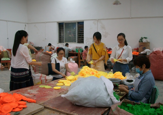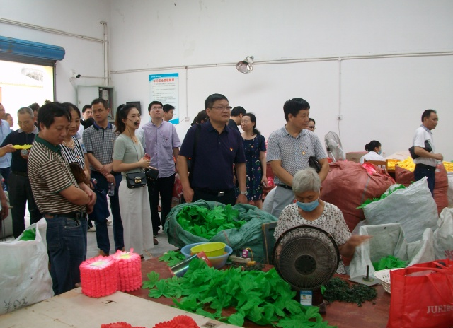 當日9時,在荊門市圓夢愛心幫扶會會議室中舉行了升旗儀式,黨員們重溫入黨誓詞,認真學(xué)習(xí)了習(xí)近平總書記視察湖北重要講話精神。隨后孟麗華介紹了市圓夢殘疾人庇護工場的相關(guān)情況,2014年,在孟麗華的牽頭下,籌建了一個助殘扶弱的公益組織,取名為荊門市圓夢愛心幫扶會,創(chuàng)辦了一個專門為殘疾人服務(wù)的庇護工場。為了更深入的了解市圓夢殘疾人庇護工場,黨員們在解說員的陪同下,參觀殘疾人員工的工作環(huán)境,還一起與員工們編織手工花朵,為工場打掃衛(wèi)生,清除雜草,給這些殘疾人員工一個更好的工作環(huán)境。