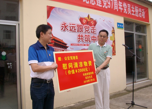 當天的活動中,市政府國資委機關(guān)總支為市圓夢殘疾人庇護工場捐贈了慰問金,并為一線公交駕駛員送去了防暑降溫物資。