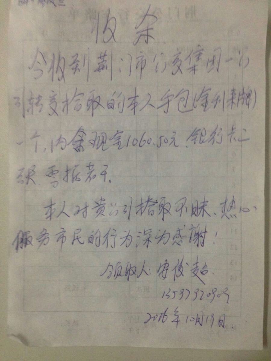 外環(huán)154駕駛員廖鳳蘭車內拾到錢包一個,交到公司后,失主聯(lián)系核實后領走。