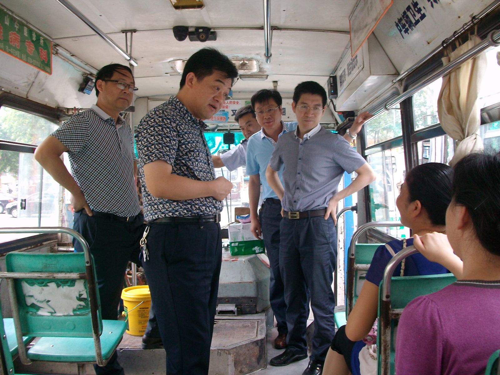 當(dāng)日中午12時,正值高溫時刻,伍應(yīng)彪等領(lǐng)導(dǎo)冒著炎炎夏日來到海慧車站,看望慰問高溫下堅守工作崗位的公交職工。在16路、21路、22路線正待發(fā)班的公交車前,伍應(yīng)彪上車與一線駕駛員親切握手,詢問了解駕駛員們的身體和工作情況,并聽取了一公司負責(zé)人對改善職工們的工作和休息環(huán)境等工作匯報。在與駕駛員們親切交談中,伍應(yīng)彪親自為駕駛員們送上了礦泉水、毛巾、人丹、清涼油等防暑降溫用品。同時,他還向部分乘客征求了改善乘車環(huán)境的意見和建議。